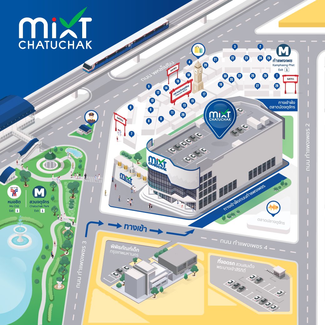 【Mixt Chuatuchak】 地址︰8 Kamphaeng Phet 3 Rd, Khwaeng Chatuchak, Khet Chatuchak, Krung Thep Maha Nakhon 10900, Thailand 交通方式:从BTS Mo Chit站或MRT Chatuchak Park下车, 穿过公园步行5分钟即可到达 Google Map定位:点击这里! 营业时间:每日10am - 10pm 粉丝专页:点击这里! 网址︰点击这里!