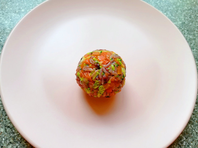 它是使用杂粮饭配上不能的蔬菜做成饭团,放在保鲜盒里,随时想吃随时开动,方便、营养又健康~