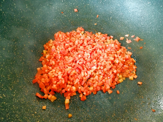 3、锅中倒入少量油,油热后倒入胡萝卜翻炒均匀。