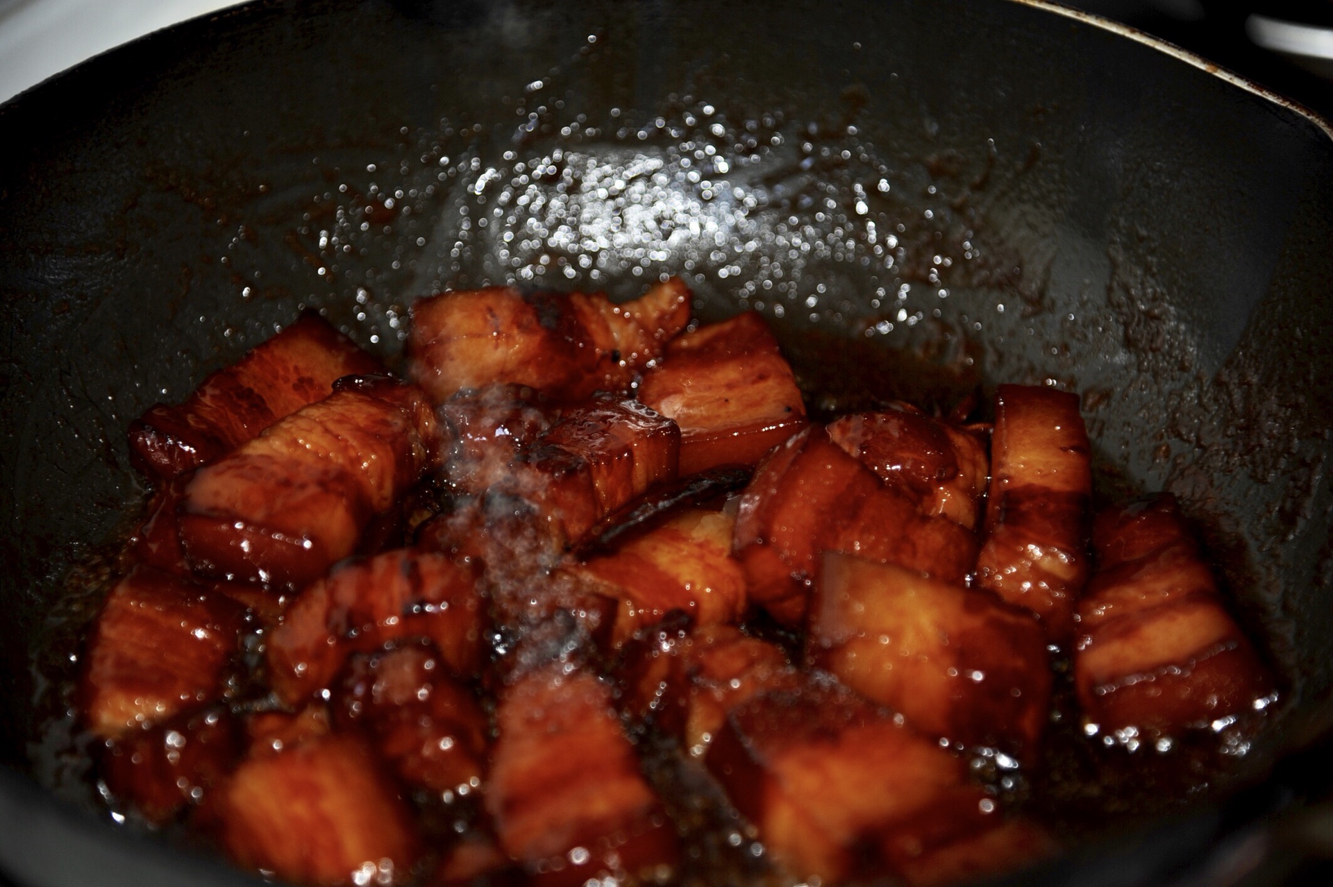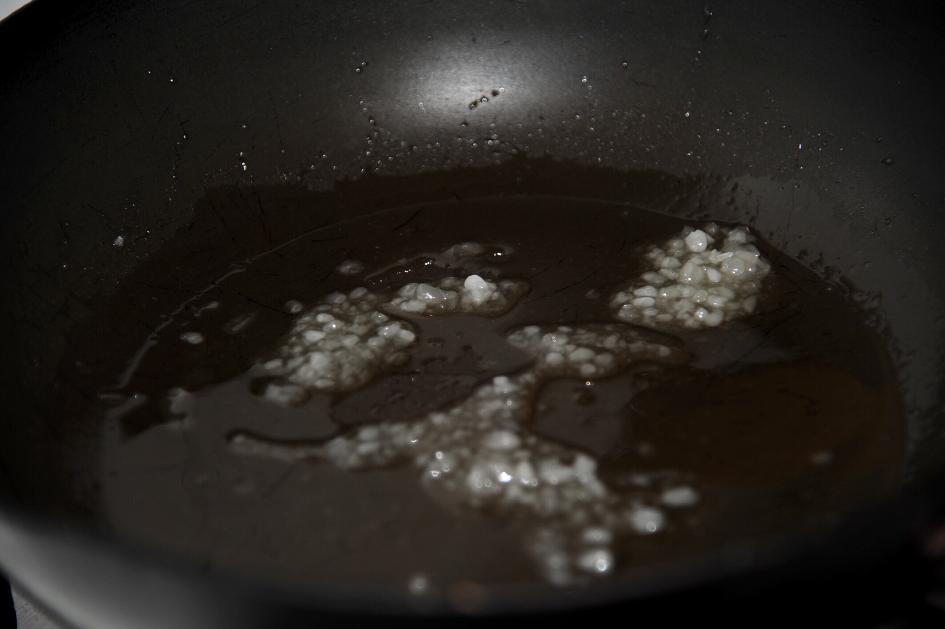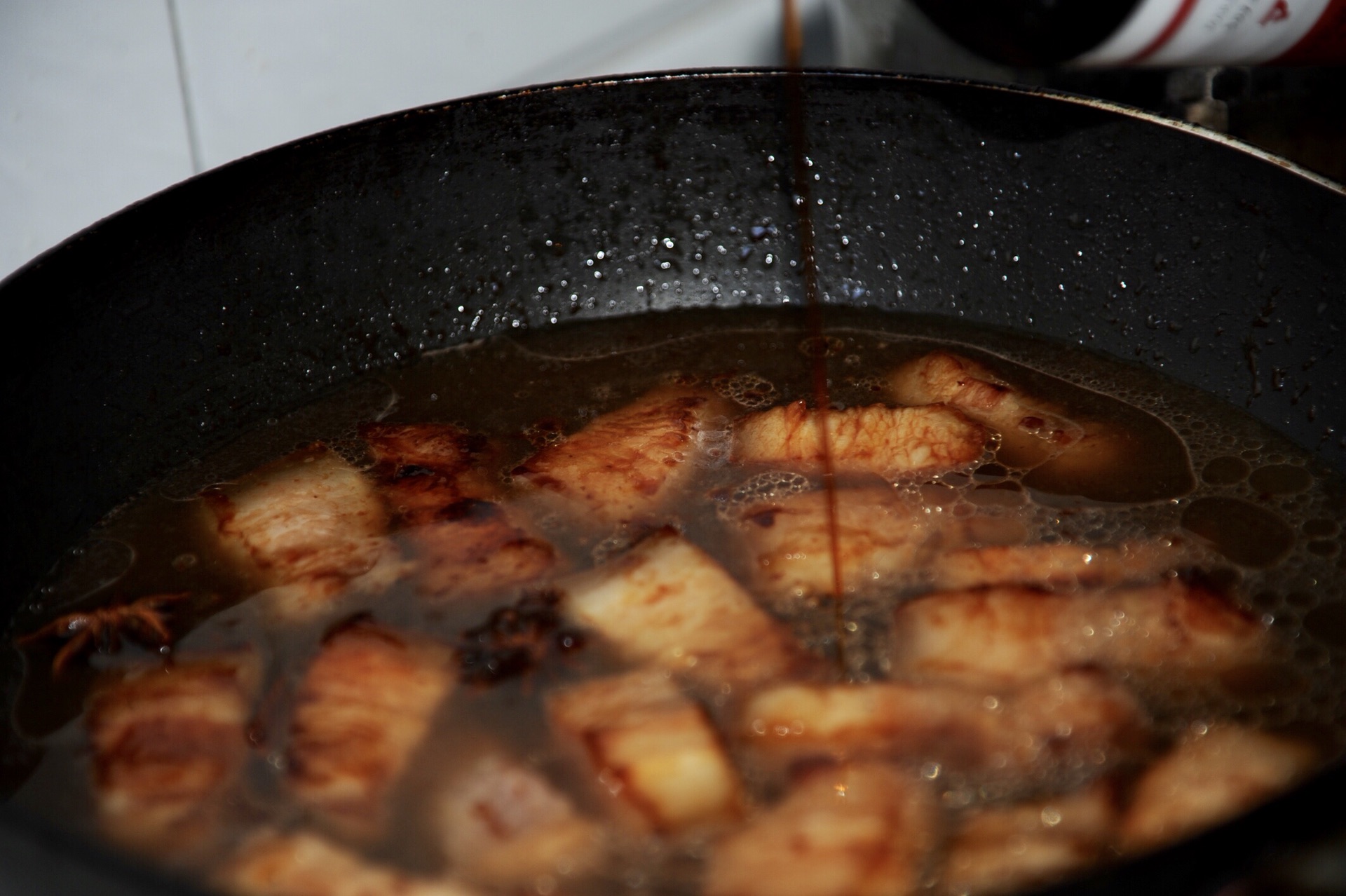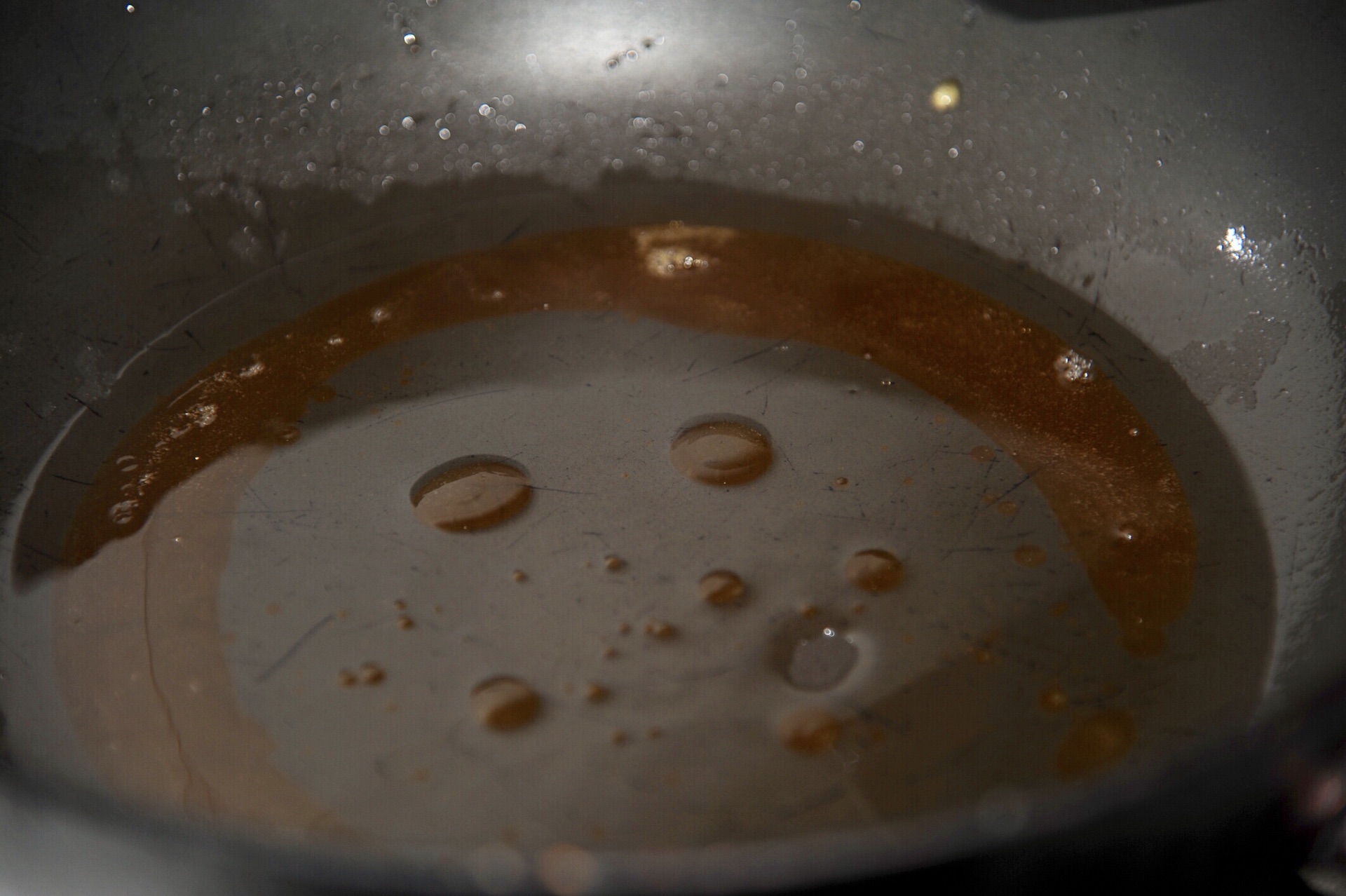 4、炒锅烧热,倒老抽,放糖烧至酱料粘稠,关火放凉。