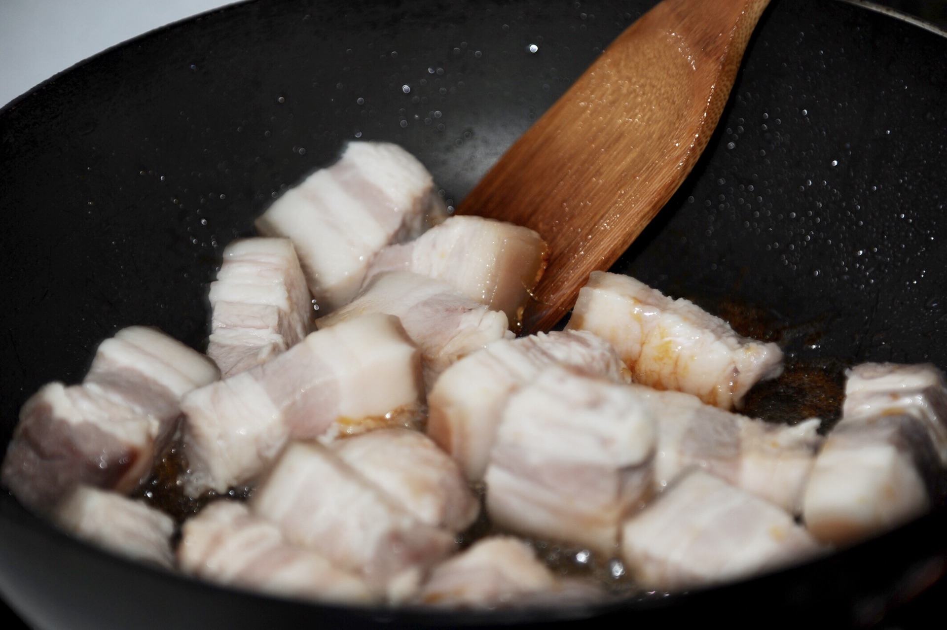 7. 放入五花肉翻炒